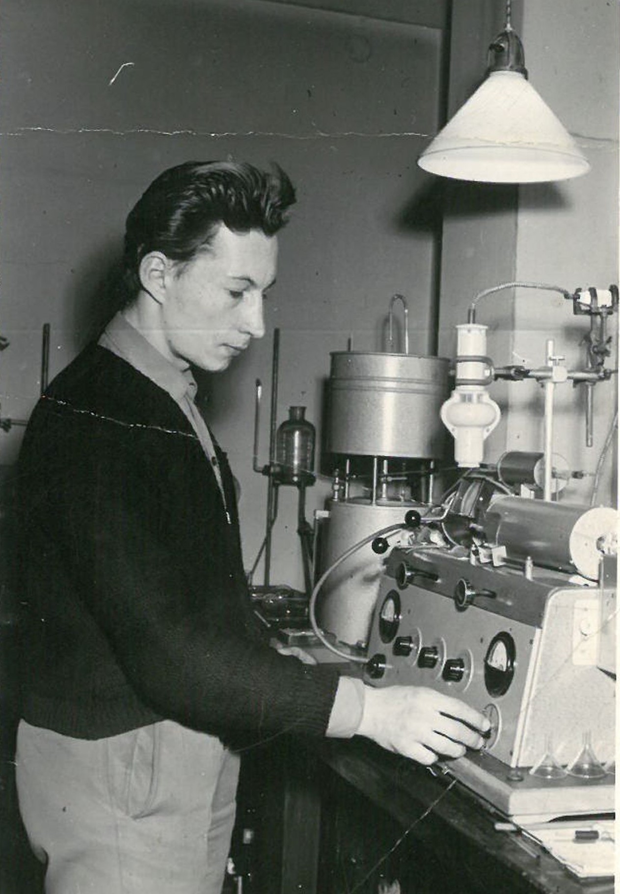 Jan Kapuściński podczas zajęć na Politechnice Łódzkiej, 1958 r.