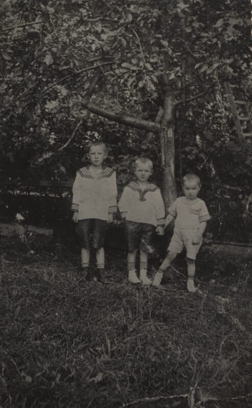 Wicuś z braćmi, Leszkiem i Czesiem, Chełmża, 1918 r.