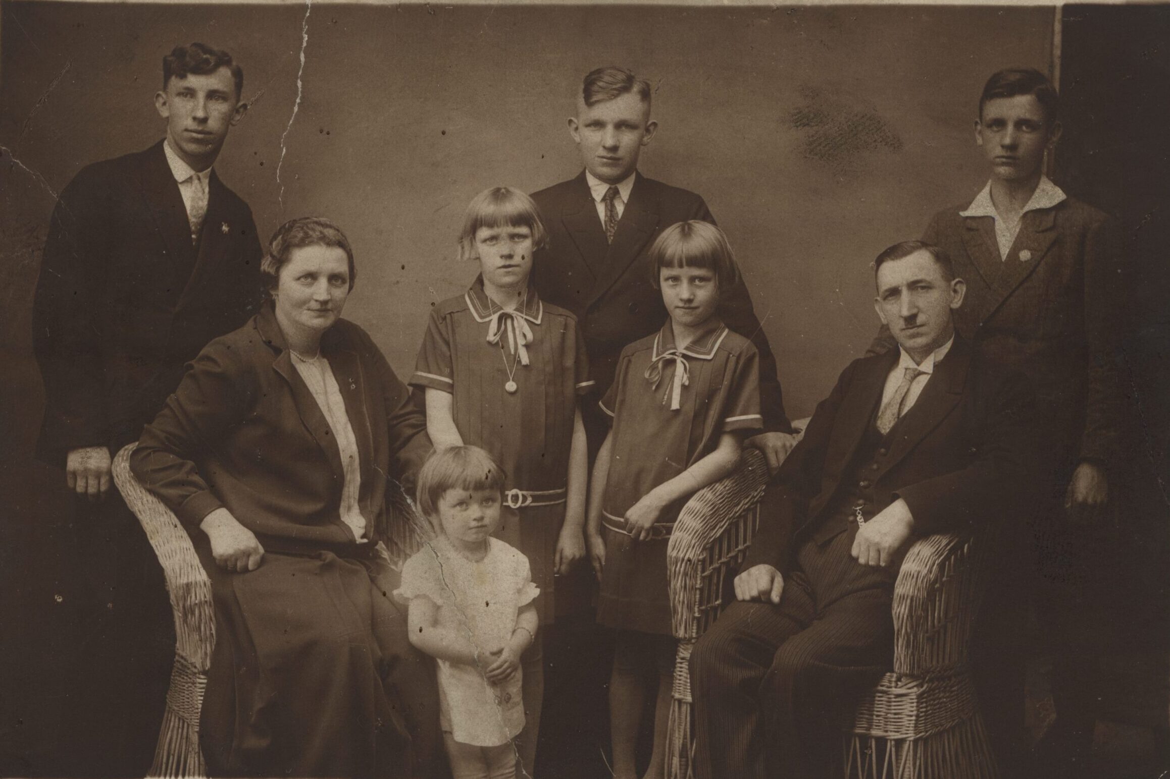 Marta i Ludwik Frelichowscy z dziećmi. Pierwszy od prawej: Wicek, Chełmża, 1930 r.