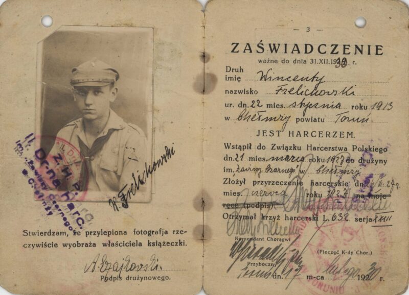 Strony z książeczki harcerskiej Wincentego Frelichowskiego, Toruń, 17 lutego 1930 r.