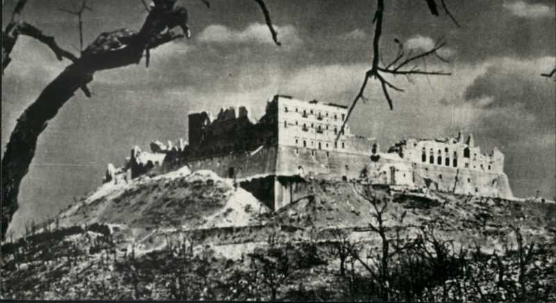 Widok na klasztor na Monte Cassino w 1945 r. ze zbioru fotografii do „Moich wojennych wspomnień 1939-1945” Stefana Droueta, część 1 i 2