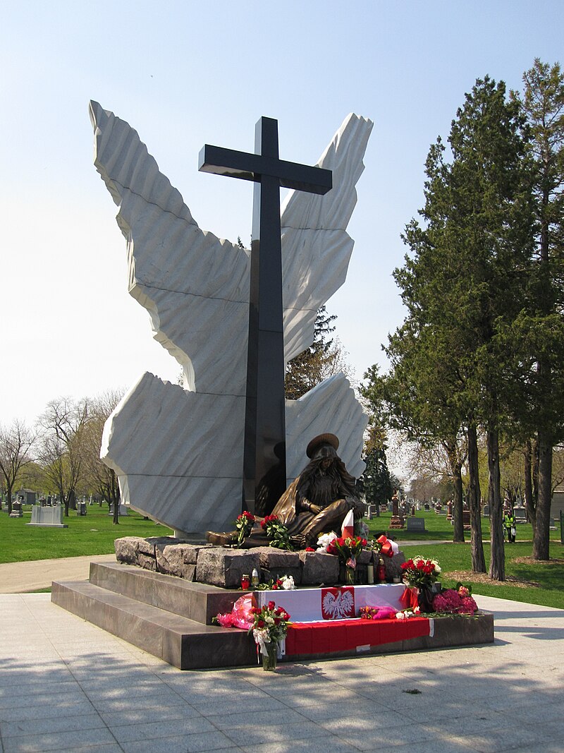 Pomnik Katyński na Katolickim Cmentarzu św. Wojciecha w Niles w Illinois. Zaprojektowany przez Wojciecha Seweryna (syna oficera zamordowanego w Katyniu), który zginął w katastrofie pod Smoleńskiem, fot. Mirosław Mucha, https://tiny.pl/c7w247yz
