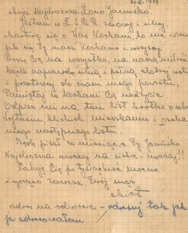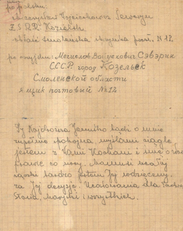 List Mieczysława Seweryna do żony przesłany z obozu w Kozielsku, 1939 r.
