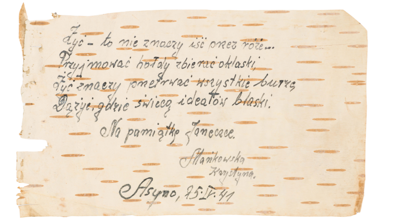 Pamiętnik wykonany z kory brzozowej z 1941 r. (18 kart, 17 zapisanych stron)