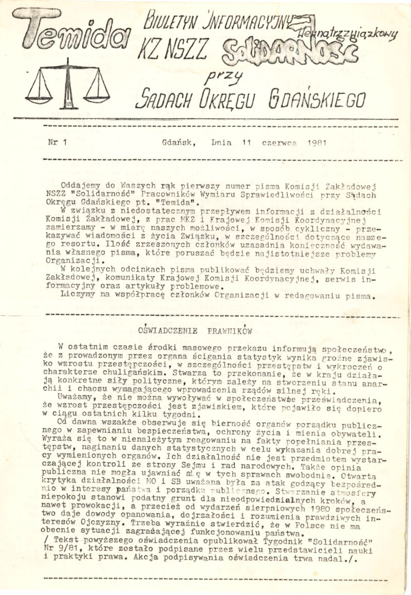 "Temida" - wydawnictwo bezdebitowe Pracowników Wymiaru Sprawiedliwości przy Sądach Okręgu Gdańskiego, 1981 r.