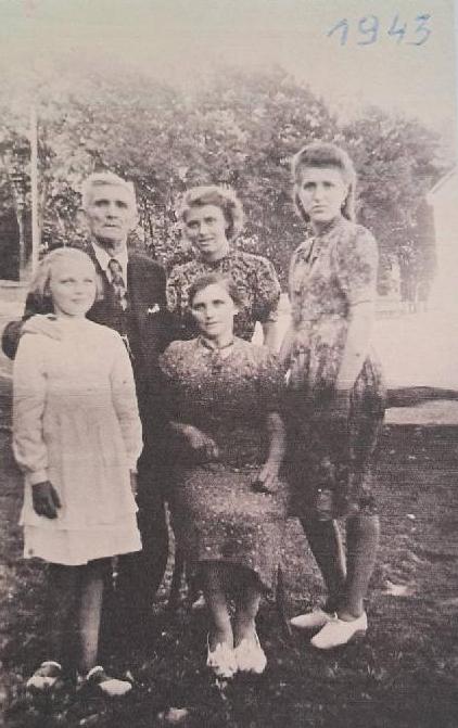 Pierwsza z prawej Kazimiera Iwelska - matka Mirosławy Brzezińskiej z siostrami i rodzicami, 1943 r.