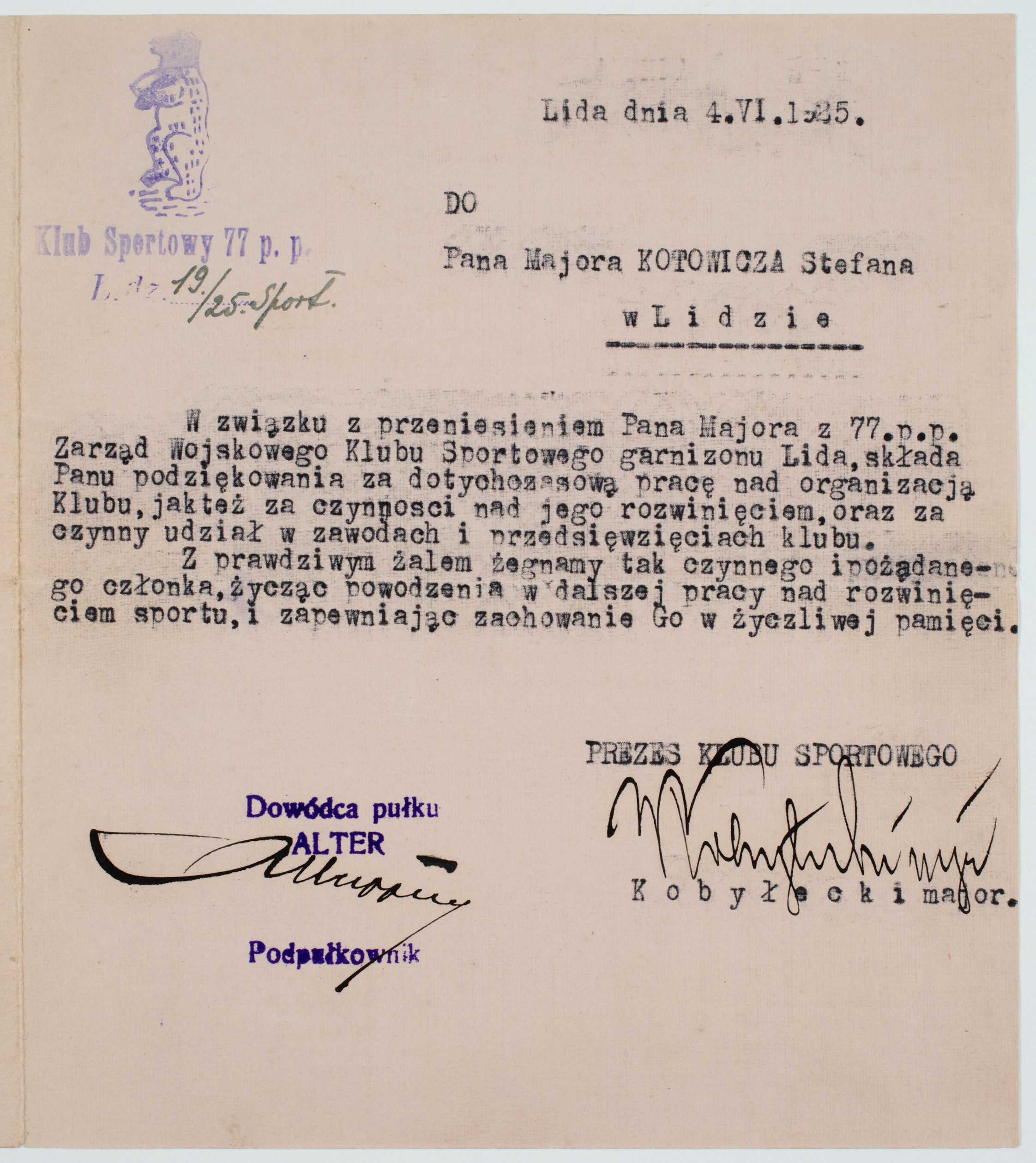 Pismo z Klubu w Lidzie