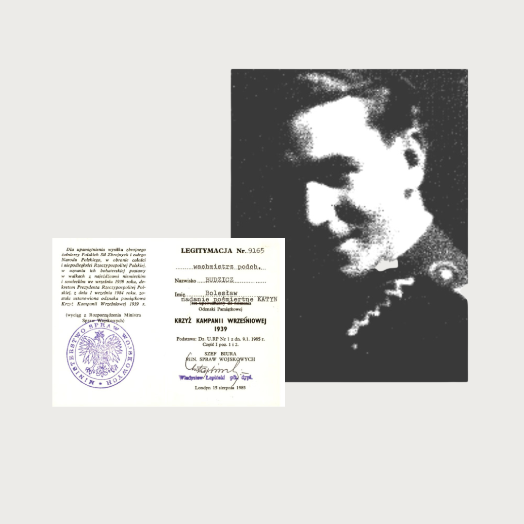 Pośmiertnie odznaczenie Bolesława Budzicza Medalem za udział w Wojnie Obronnej 1939 r. i Krzyżem Kampanii Wrześniowej 1939 r, 1985r.